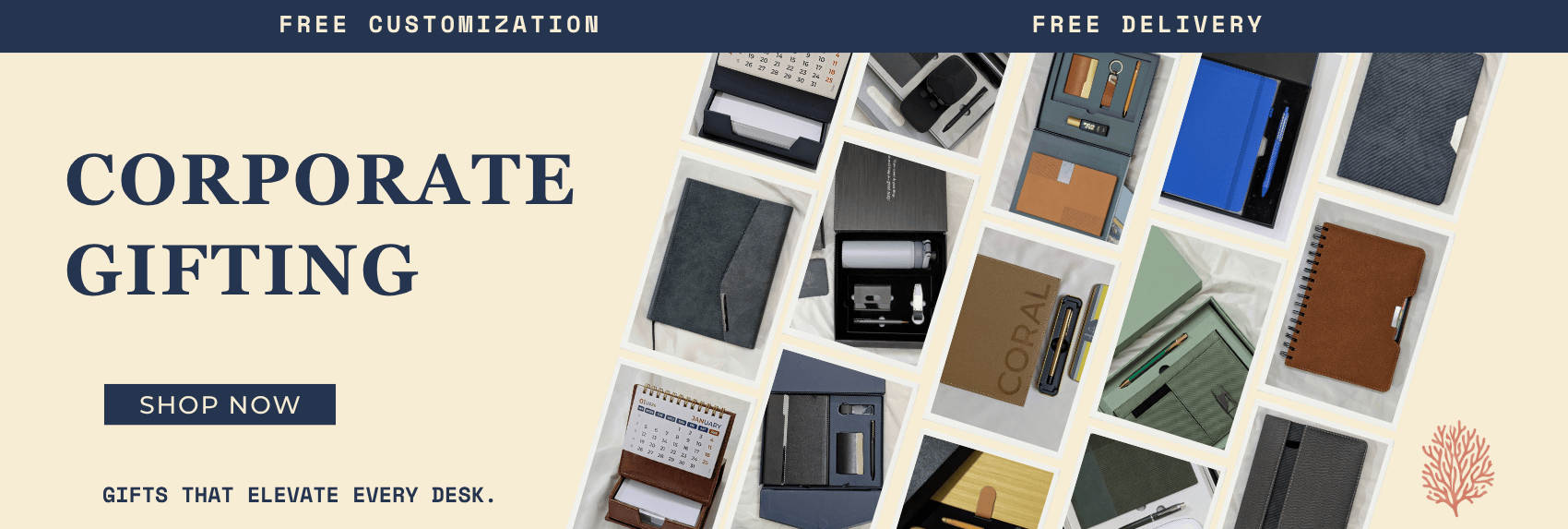 We started Coral Paper Company with a simple question: why does corporate gifting feel so soulless? Why are desk accessories either too boring to notice or too loud to love? We wanted to change that, to bring products that make work and gifting feel intentional again. We keep it simple: custom gifts, delivered fast, with zero friction.