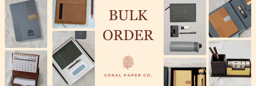 At Coral Paper Co., we simplify corporate gifting with products designed to stay on your desk, not in drawers. From personalised notebooks and pens to curated gift sets and desk companions - every product is built for modern professionals who value clarity, organisation and design.