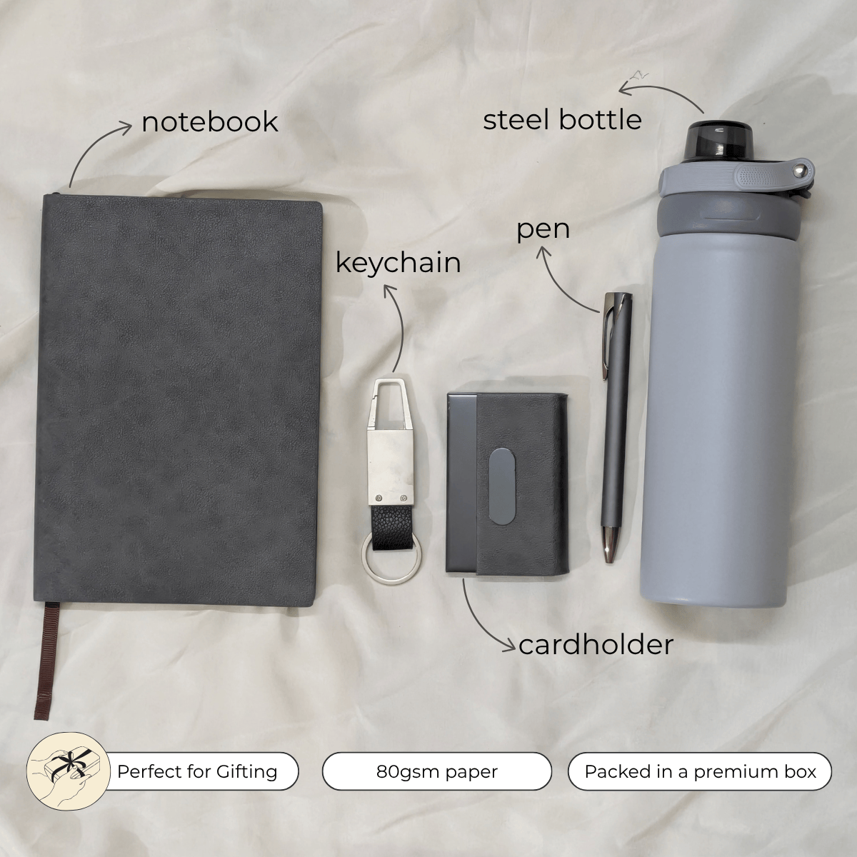 Redefine functionality with the Charcoal Gray Executive Set, crafted for those who appreciate understated luxury. With its durable design and smart essentials, it’s the perfect fusion of performance and style.