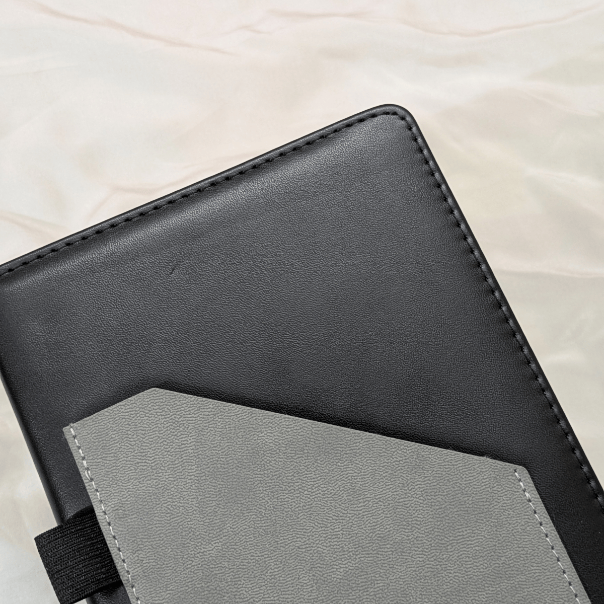 Designed for modern professionals, this Black PU Leather Notebook combines elegance with everyday utility. Its sleek dual-tone cover features a built-in phone holder pocket, ensuring your essentials stay organised whether you're at your desk, in meetings, or on the move. The soft-foam PU leather finish, stitched sides, and elastic pen loop add durability and refinement to your daily note-taking routine.
